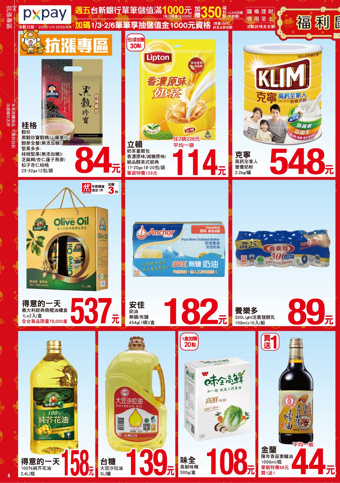 2020-01-03商店優惠券、DM, 全聯福利中心🥫 《💥當日熱搜商品》 《💥精選產品系列》 💥➪最新優惠訊息&🔴最新文章》 全聯福利中心 DM、全聯生活誌、促銷目錄、優惠內容 DM 【2020/1/16 止】 【活動期間以全聯福利中心最後公告為主】 台灣優惠券大全》省錢大作戰》首頁 《💥當日熱搜商品》 《💥精選產品系列》 分享此文: 分享到 Facebook(在新視窗中開啟) Facebook 分享到 Pinterest(在新視窗中開啟) Pinterest 分享到 Reddit(在新視窗中開啟) Reddit 在 Tumblr 上分享(在新視窗中開啟) Tumblr 分享到 Threads(在新視窗中開啟) Threads 分享到 X(在新視窗中開啟) X 請按讚:喜歡 正在載入... 相關 標籤# 全聯福利中心# DM# 全聯生活誌# 促銷目錄# 優惠內容# 全聯 上一 文章 大潤發 DM 【2020/1/25 止】 下一 文章 愛買 DM 》天天迎春 天天愛買 【2020/2/4 止】