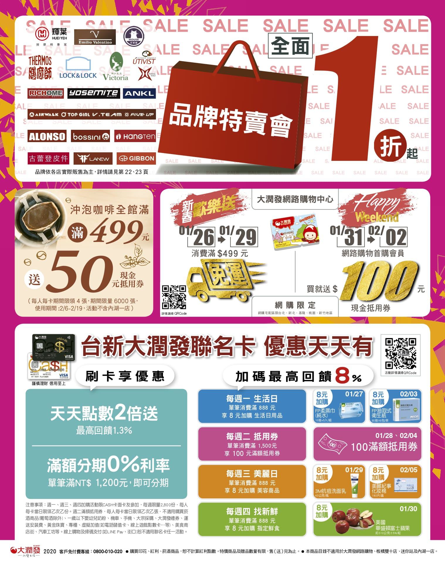2020-01-26商店優惠券、DM, 大全聯🛒 《💥當日熱搜商品》 《💥精選產品系列》 💥➪最新優惠訊息&🔴最新文章》 大潤發 DM 【2020/2/5 止】 【活動期間以大潤發最後公告為主】 台灣優惠券大全》省錢大作戰》首頁 《💥當日熱搜商品》 《💥精選產品系列》 分享此文: 分享到 Facebook(在新視窗中開啟) Facebook 分享到 Pinterest(在新視窗中開啟) Pinterest 分享到 Reddit(在新視窗中開啟) Reddit 在 Tumblr 上分享(在新視窗中開啟) Tumblr 分享到 Threads(在新視窗中開啟) Threads 分享到 X(在新視窗中開啟) X 請按讚:喜歡 正在載入... 相關 標籤# 大潤發 上一 文章 大樂透開獎號碼》第109000009期 民國109年1月25日《大樂透中獎號碼》以及春節大紅包》 下一 文章 大樂透開獎號碼》第109000010期 民國109年1月26日《大樂透中獎號碼》以及春節大紅包》