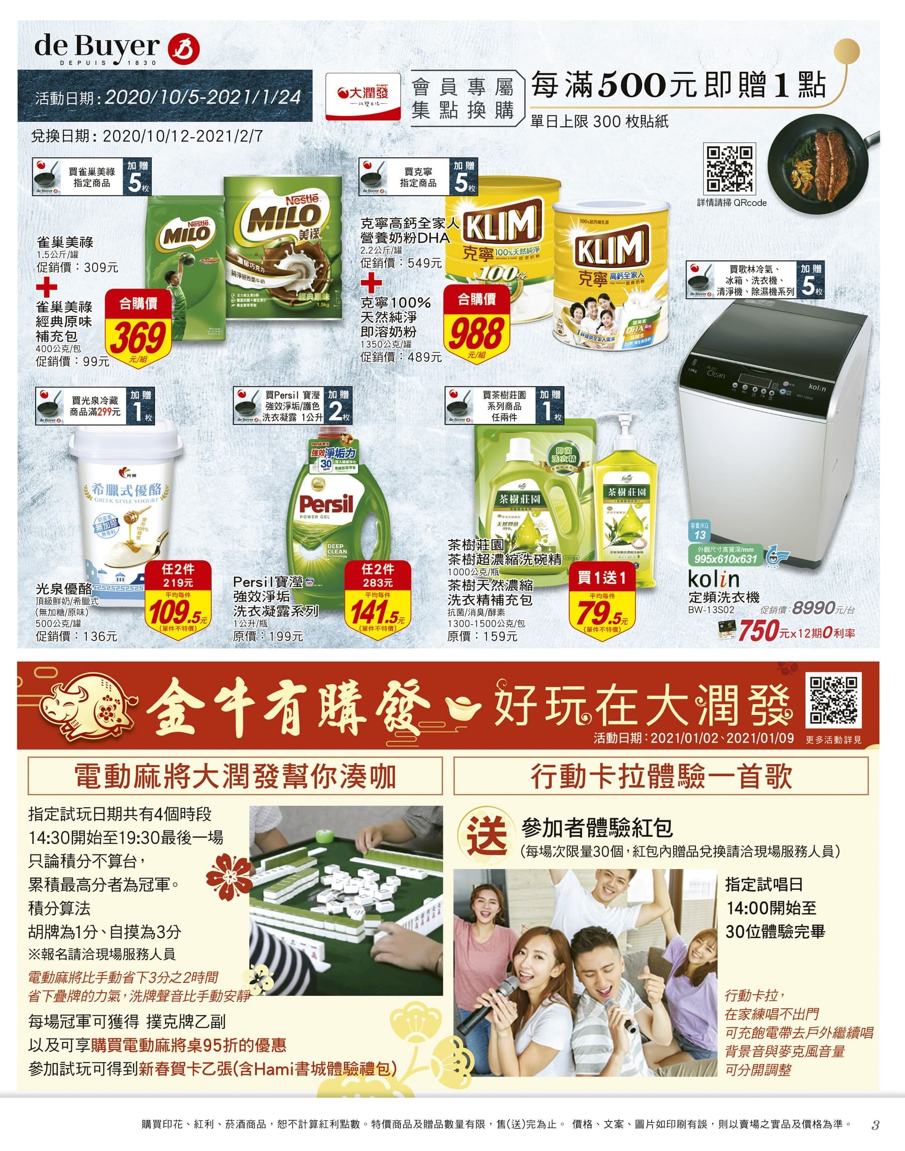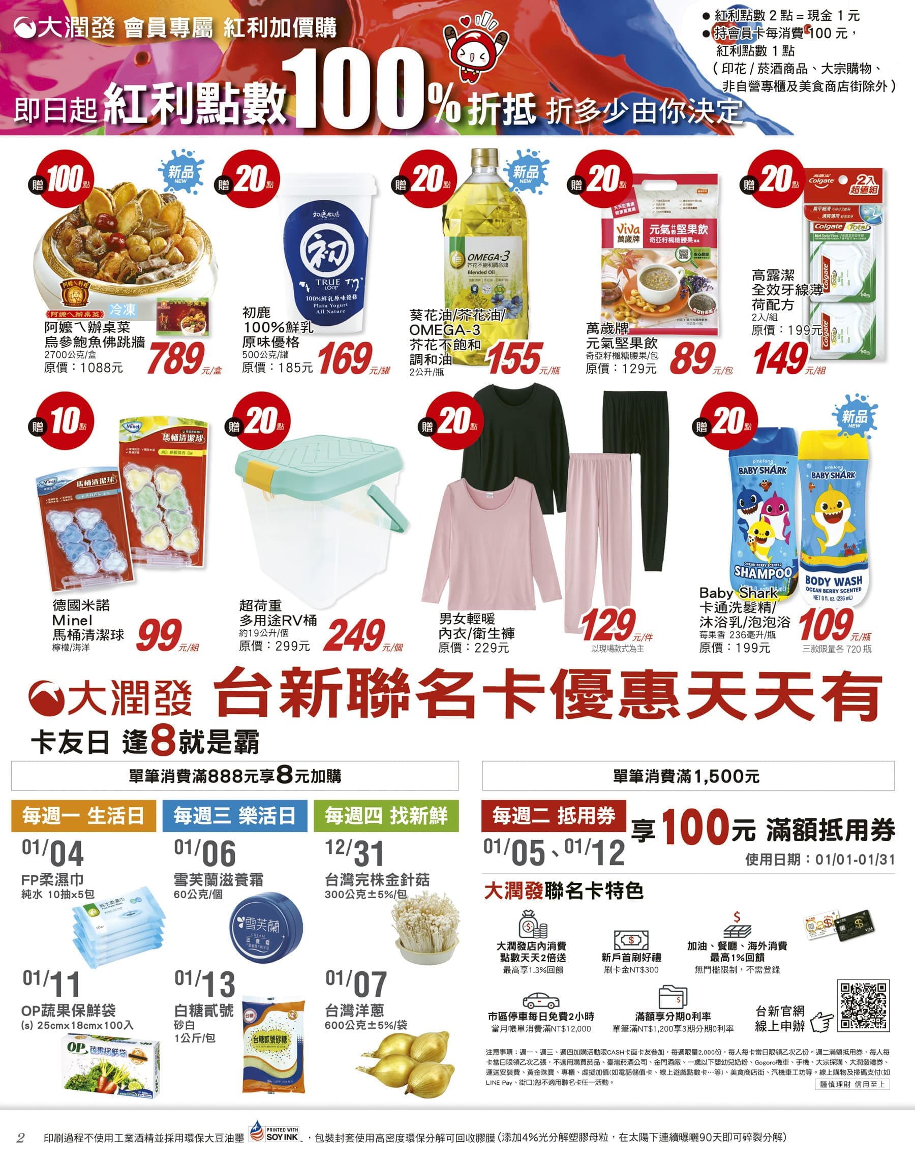 2020-12-31商店優惠券、DM, 大全聯🛒 《💥當日熱搜商品》 《💥精選產品系列》 💥➪最新優惠訊息&🔴最新文章》 大潤發 DM 當期型錄【2021/01/13 止】促銷目錄、優惠內容 【活動期間以大潤發最後公告為主】 台灣優惠券大全》省錢大作戰》首頁 大潤發 🛒DM、促銷目錄、優惠內容🛒《前往大潤發官網》《大潤發臉書》※大潤發 保有隨時調整活動期間、各項優惠內容及終止活動之權利 ※ Loading… 《💥當日熱搜商品》 《💥精選產品系列》 分享此文: 分享到 Facebook(在新視窗中開啟) Facebook 分享到 Pinterest(在新視窗中開啟) Pinterest 分享到 Reddit(在新視窗中開啟) Reddit 在 Tumblr 上分享(在新視窗中開啟) Tumblr 分享到 Threads(在新視窗中開啟) Threads 分享到 X(在新視窗中開啟) X 請按讚:喜歡 正在載入... 相關 標籤# 大潤發# DM# 促銷目錄# 優惠內容 上一 文章 屈臣氏 DM 》2020/12/31-2021/02/24 》促銷目錄、優惠內容 下一 文章 全國電子 DM》活動日期:110/01/01~01/7》DM、促銷目錄、優惠內容
